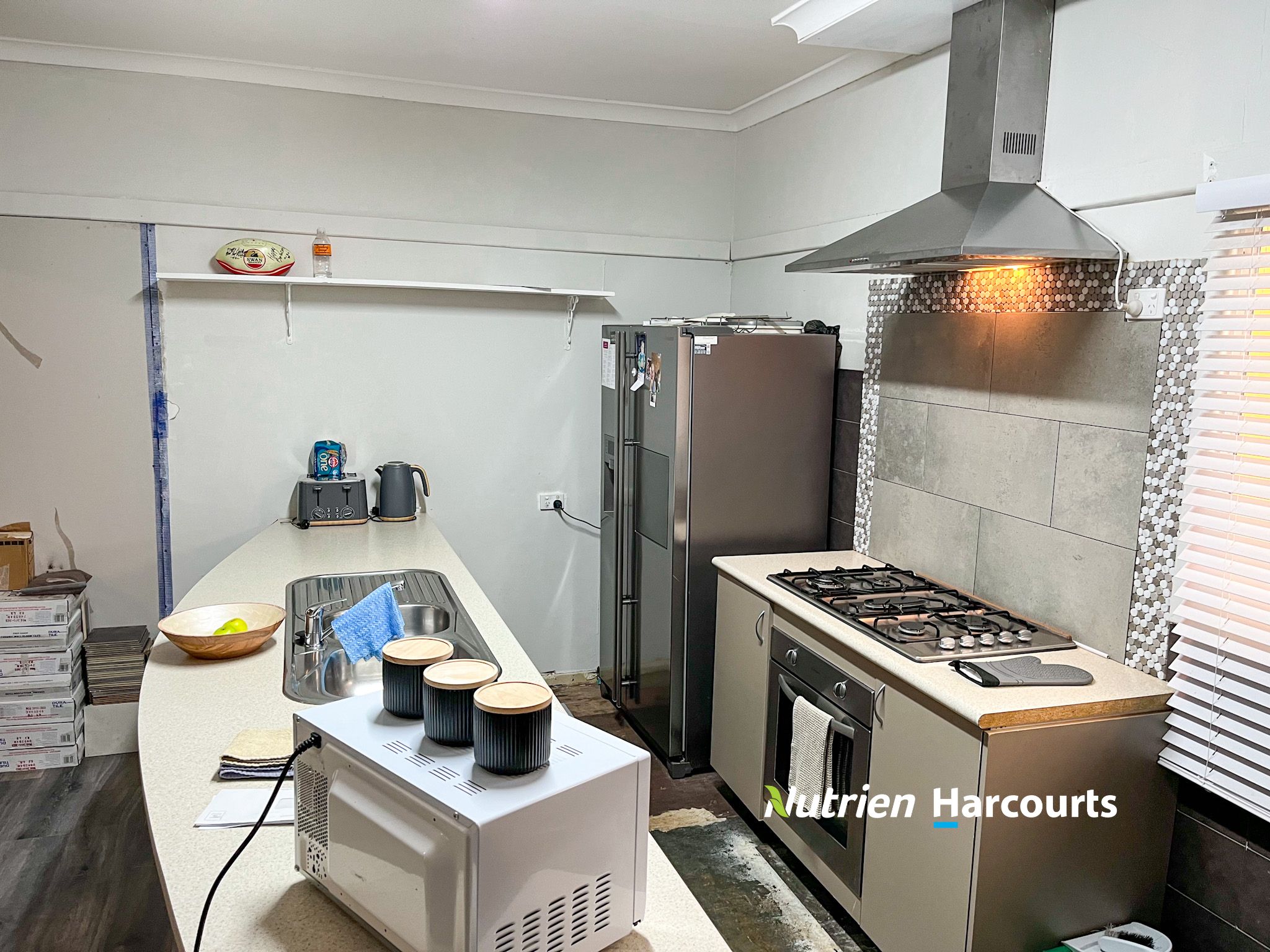 Beat the rent cycle or secure vital accommodation for your workforce! What was originally a side by side duplex situated on a quarter acre block is now a five bedroom home with expansive living areas. The current owners have commenced renovations, the feature of which is the brand-new kitchen and floor coverings in the living areas. Heating and cooling to the living area is provided by reverse cycle air conditioning.